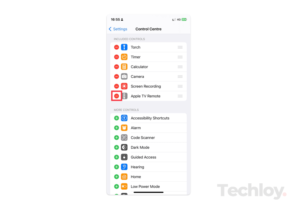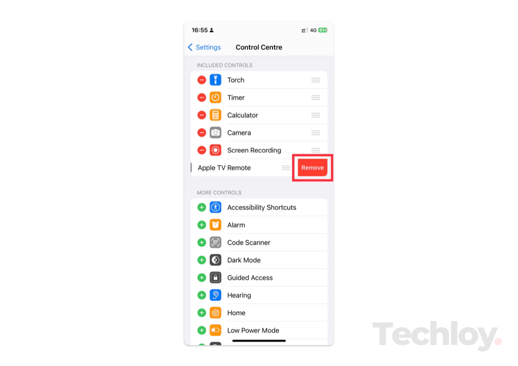 3. Then tap on Remove to delete the feature from the Control Centre