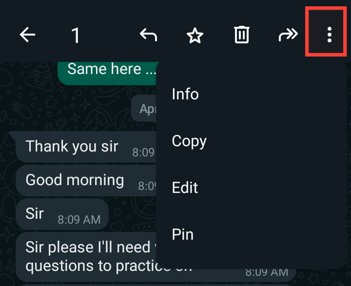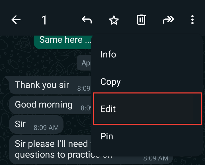 - Tap to open the chat and long press on any message you want to edit to highlight it