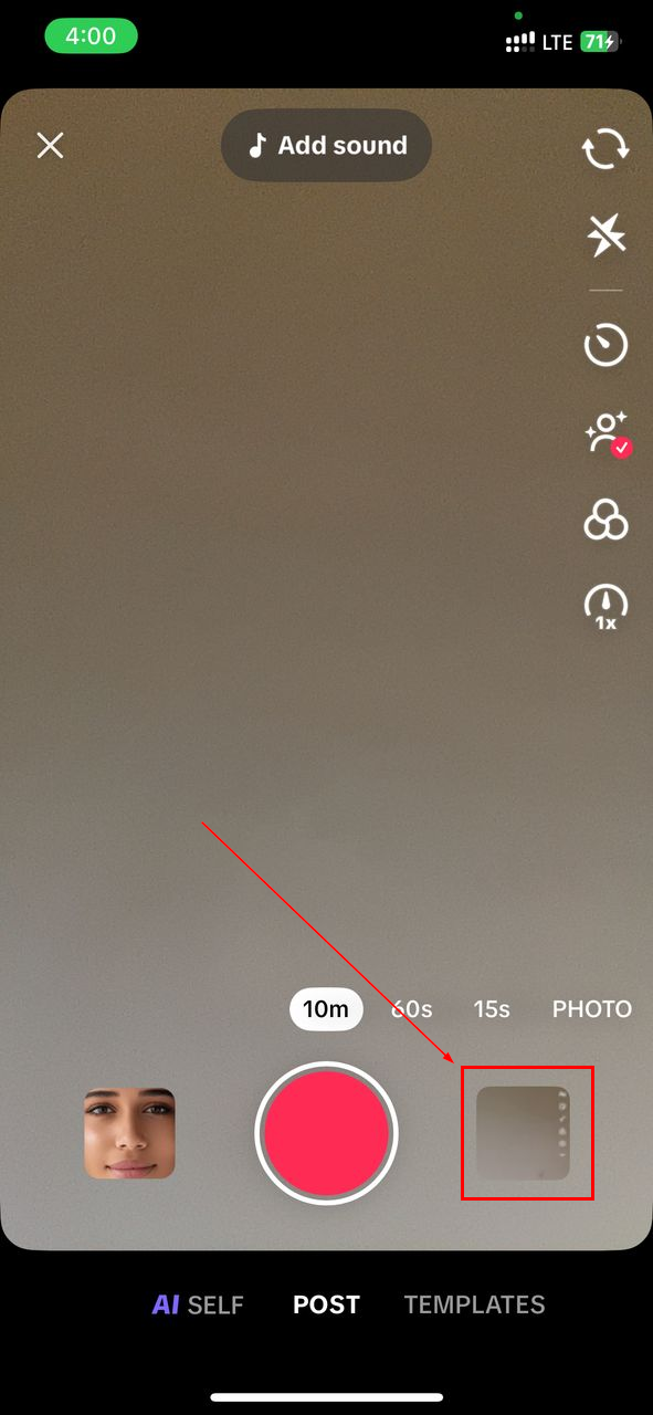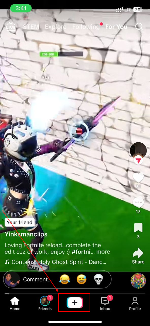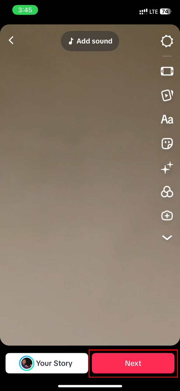 Step 1: Open the TikTok app and tap the Plus icon at the bottom of the screen
