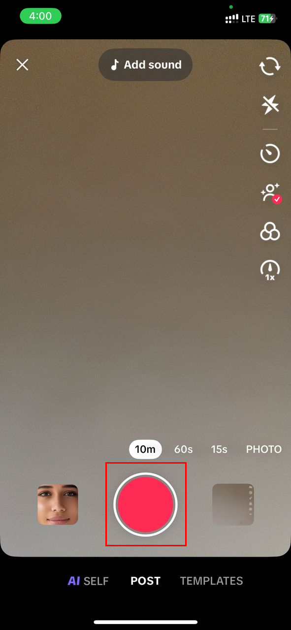 Step 2: Press the red record button at the bottom of the screen to start recording - you can record for up to 10 minutes