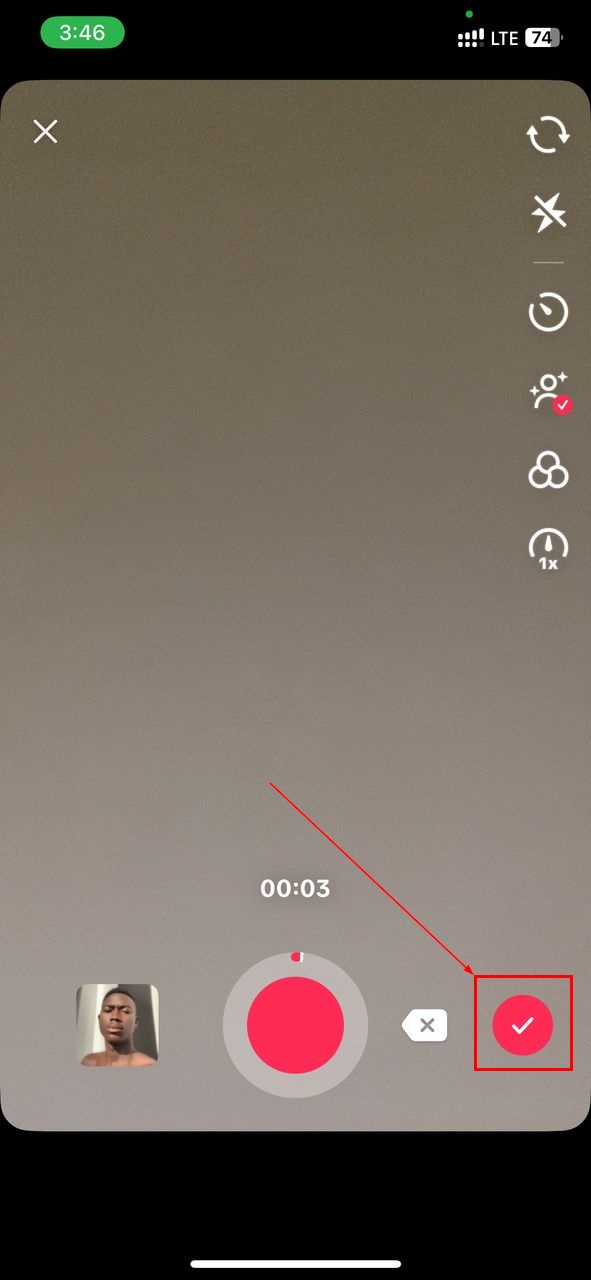 Step 3: Once you've recorded, tap the Tick button at the bottom-right of the screen