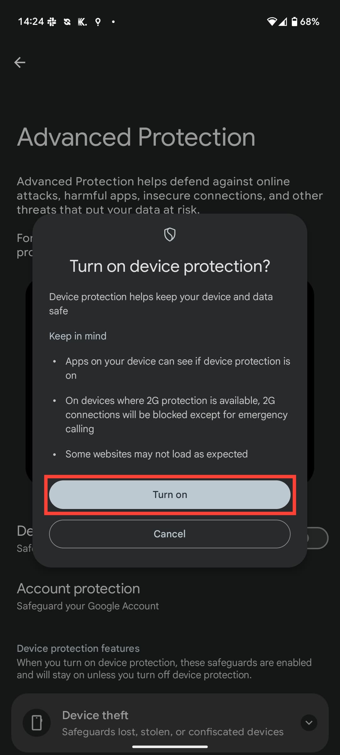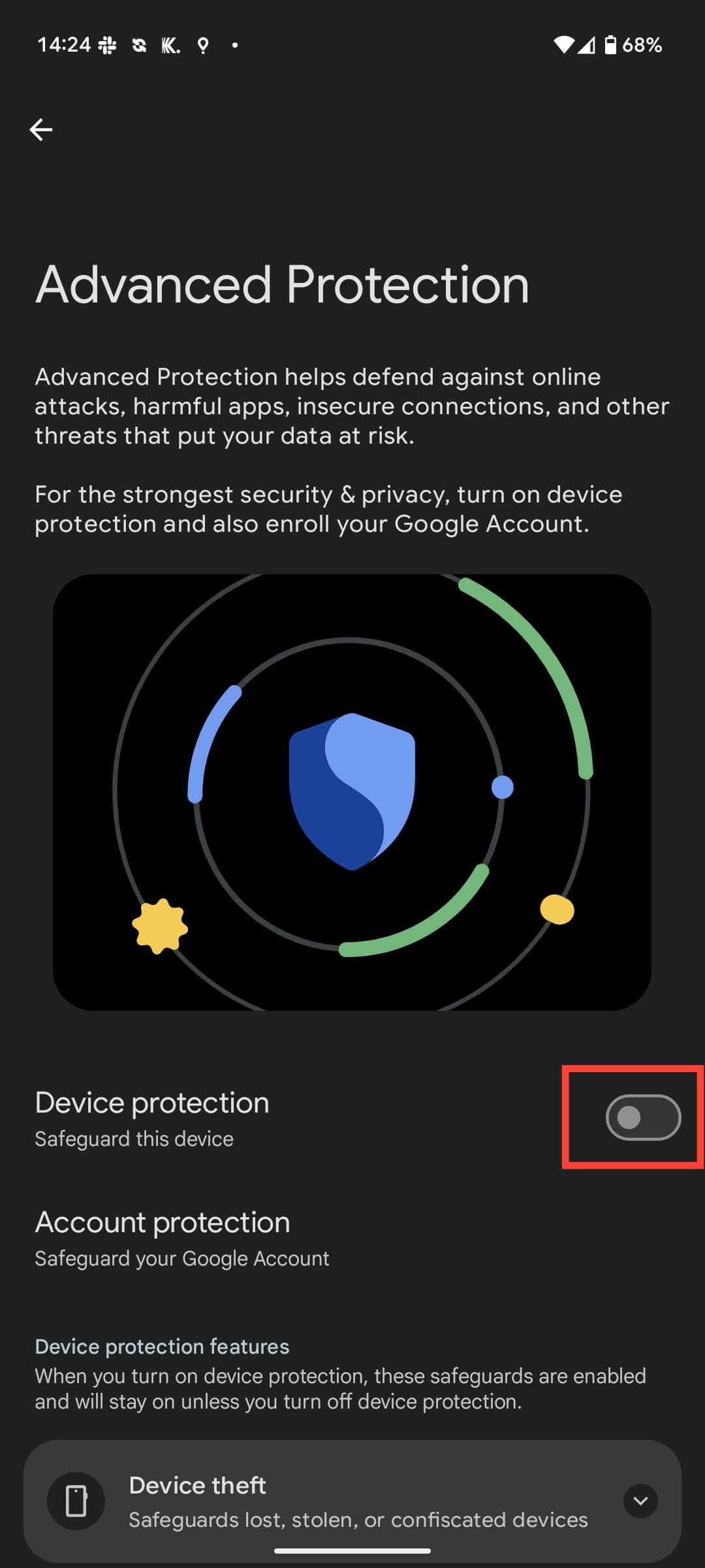 Advanced Protection is not the average security setting. It’s like putting your phone in maximum lockdown. Your phone auto-locks if someone snatches it and Chrome won’t even let you visit risky sites.
