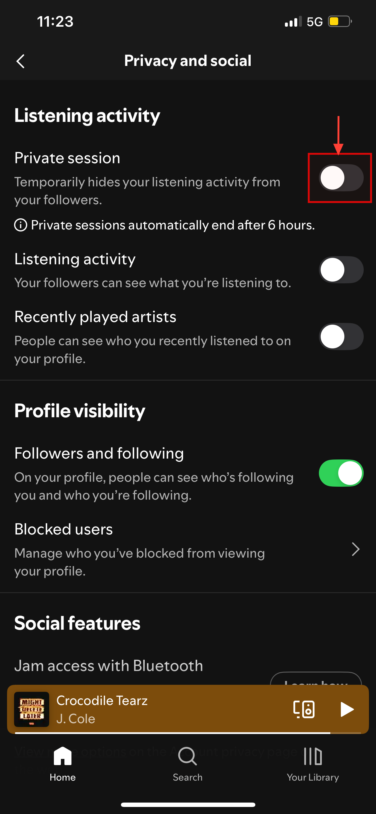 Step 5: Turn on toggle Private Session to enable it and turn off toggle to disable it