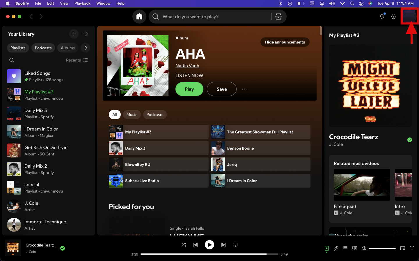 Step 2: Click on the account icon on the Spotify web page or desktop app at the top right-hand corner