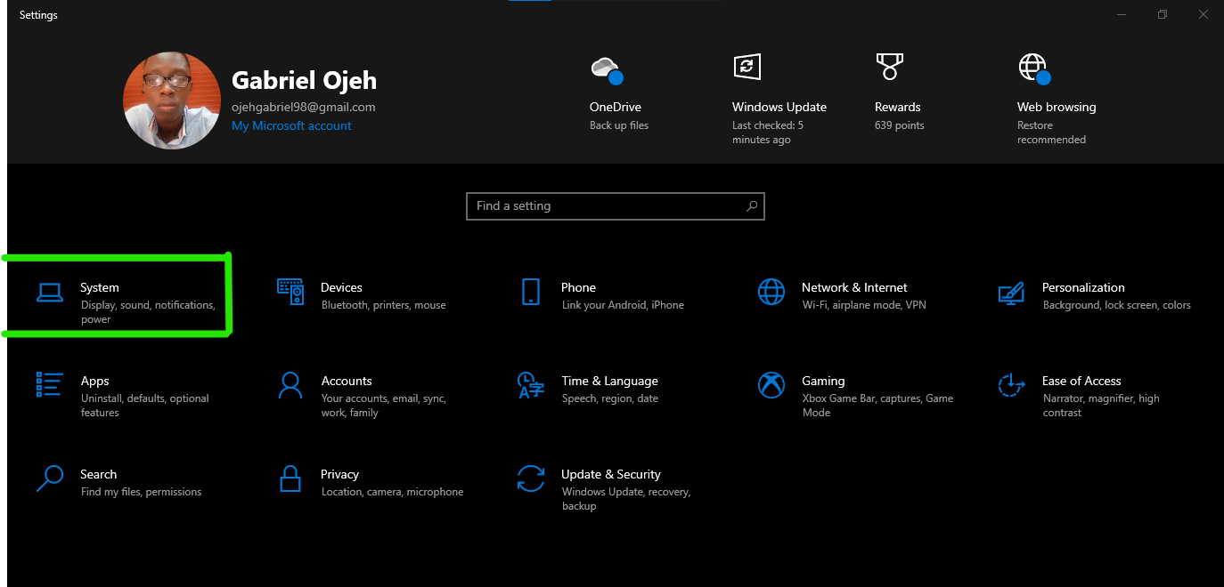 - To access your settings, Click on the Start menu and look for the gear-shaped icon then Click on it. or you could simply press the Windows key + I at the same time. Alternatively, you can use the search bar to search for Settings.
