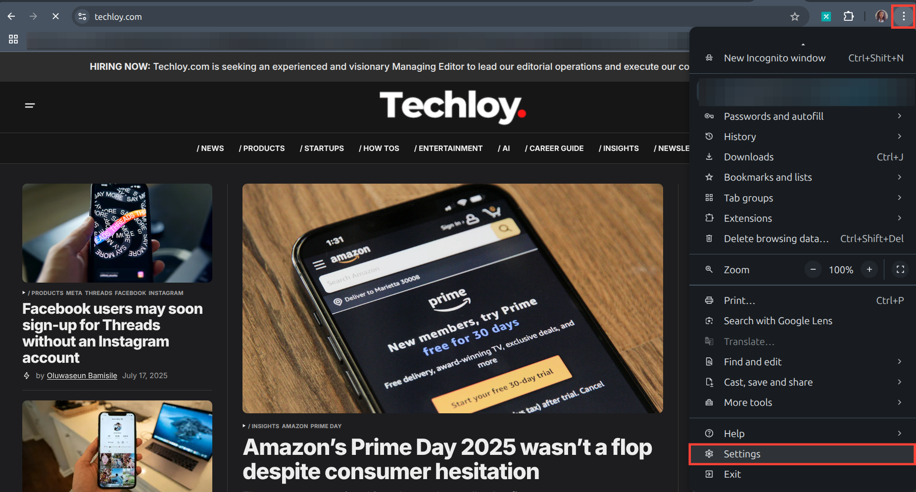 Step 1: Open your Chrome browser on your laptop and click on the three-dot icon on the top right and select settings.