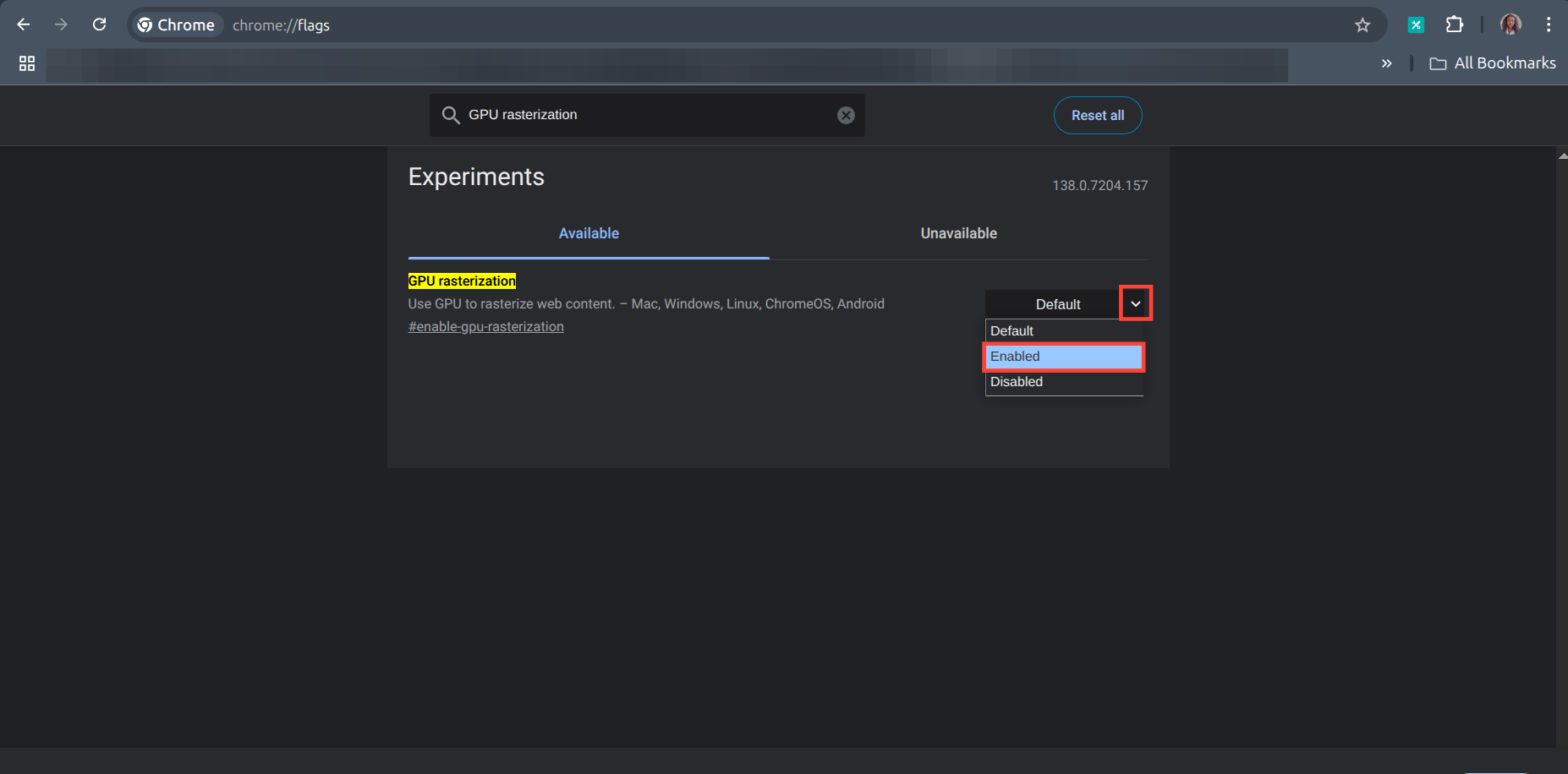Step 3: Click the drop-down menu next to GPU rasterization and select Enabled.