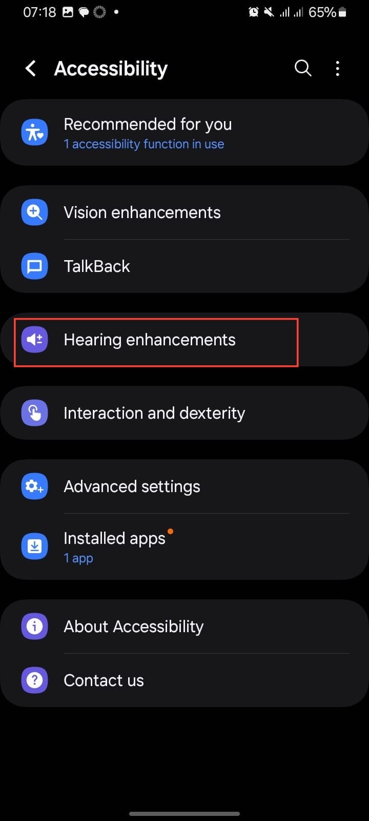 Step 3. Select "Hearing enhancement" then click the Live Caption option or scroll down to "Caption"(This step might vary depending on your Android device)
