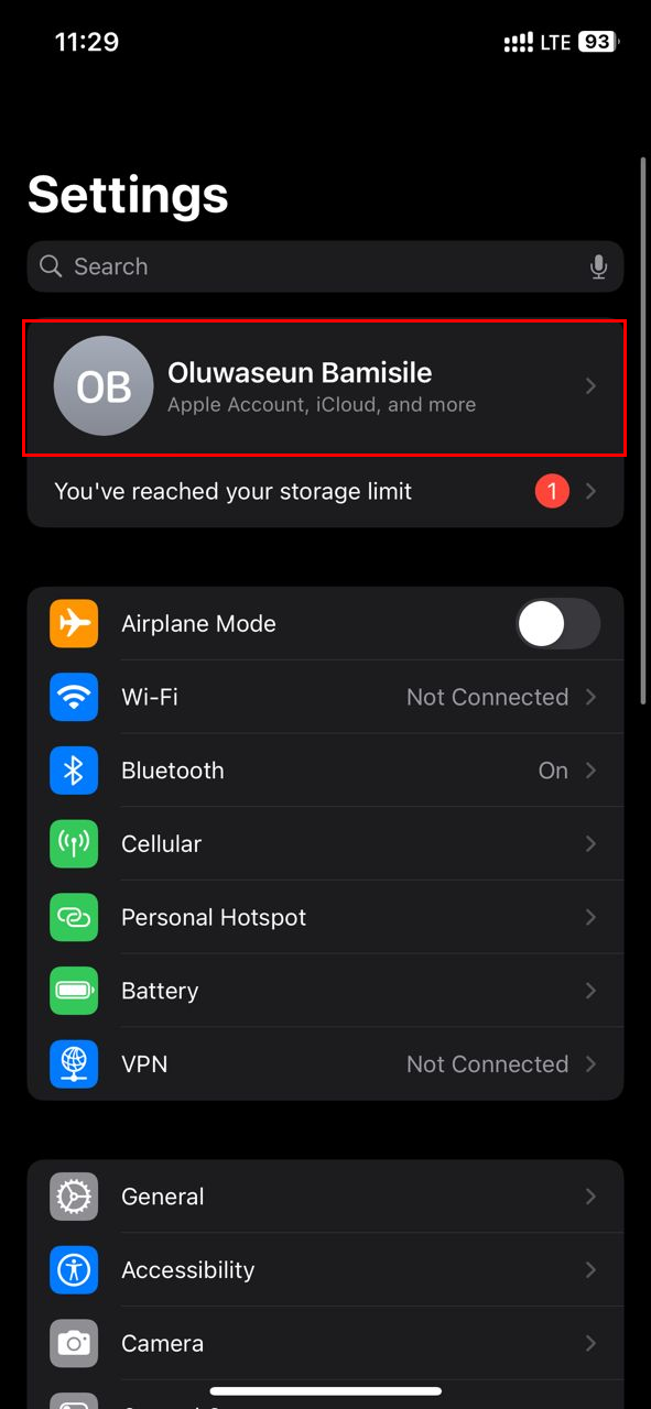 Step 1: Open the Settings app on your iPhone, then click your Apple ID name at the top
