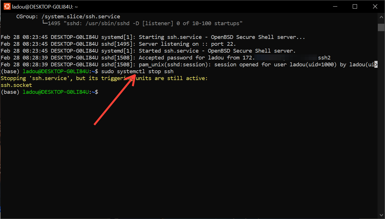 Step 6: To disable the SSH server, run "sudo systemctl stop ssh"