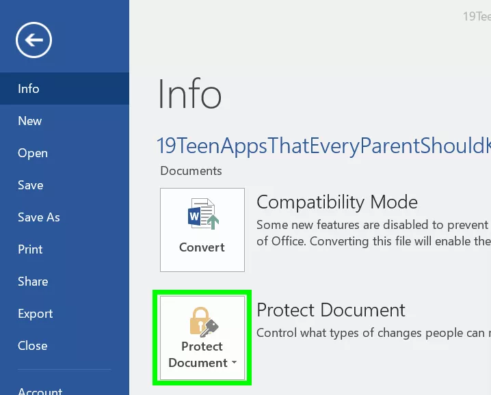 5. Locate and click on Protect Document to proceed.