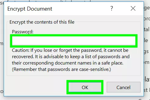 You will be prompted to re-enter the same password once again. After doing so, click OK. Please note that whenever you exit this file, you will need to enter the same password to reopen it. It is crucial to store this password in a separate and secure location for future reference.