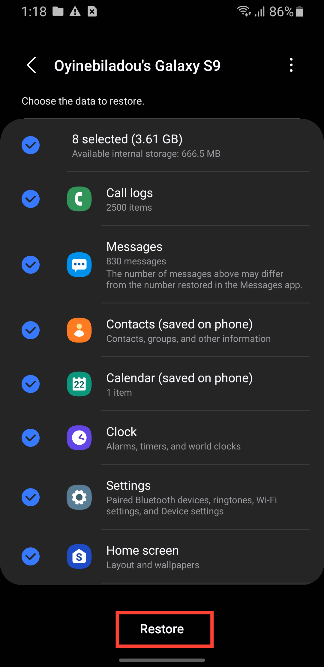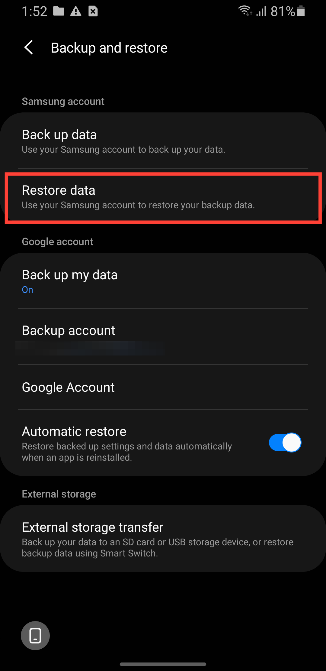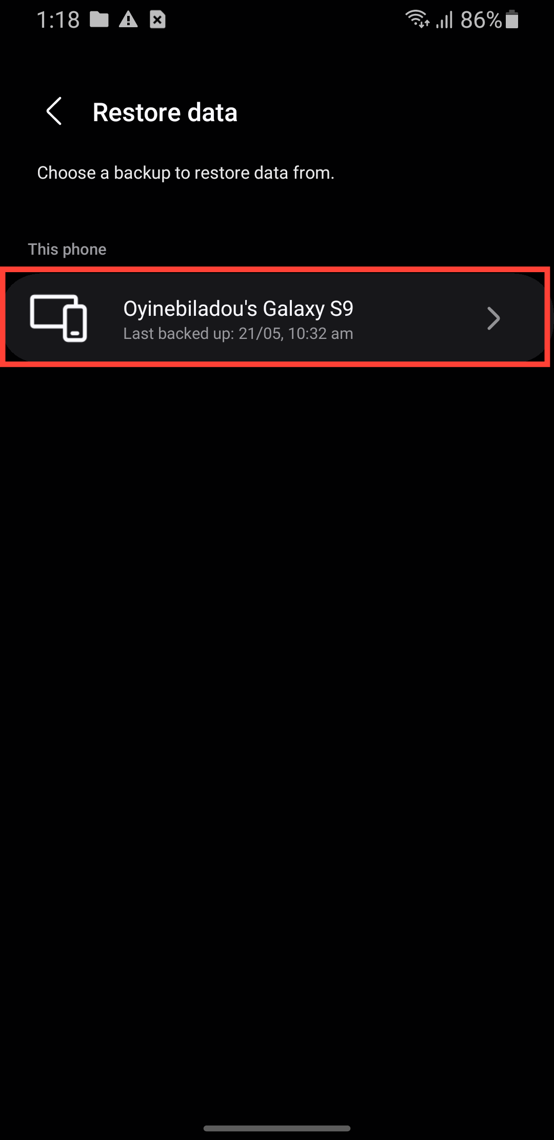 During Setup, sign in to your Samsung account, then choose Restore from backup. Now, if this doesn’t come up once your device comes on;
