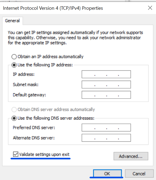 - Click on the Validate settings upon exit to ensure your values are valid. If valid, select the OK button, and that is all.