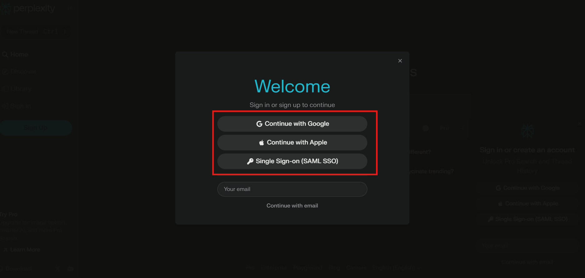 Step 1: Go to Perplexity.ai and sign in with your Google account or Apple account.