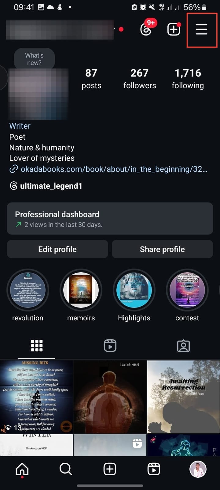 Step 2. Hit the three-line menu at the top right to access "Settings and Activity."