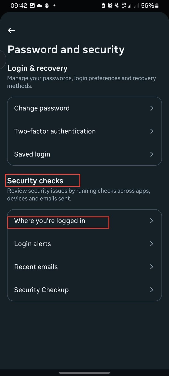 Step 4. Under "Security Checks," tap "Where you’re logged in."