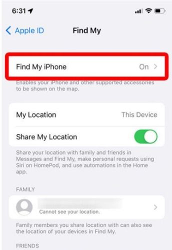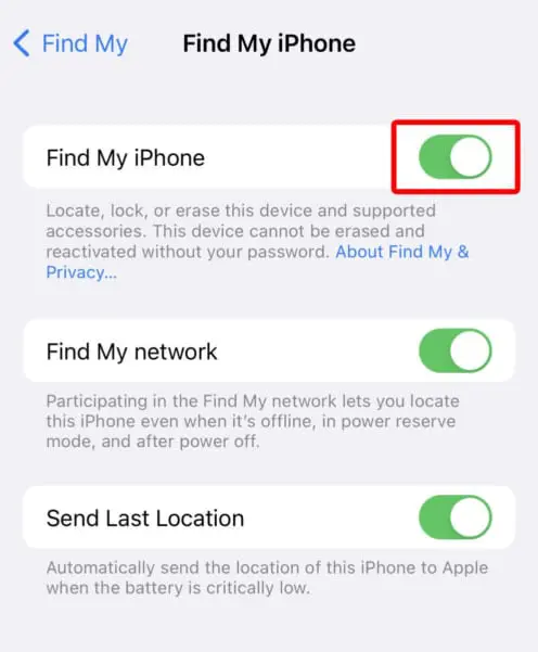 5. To locate your iPhone, Toggle on the Find My Network and Send Last Location options