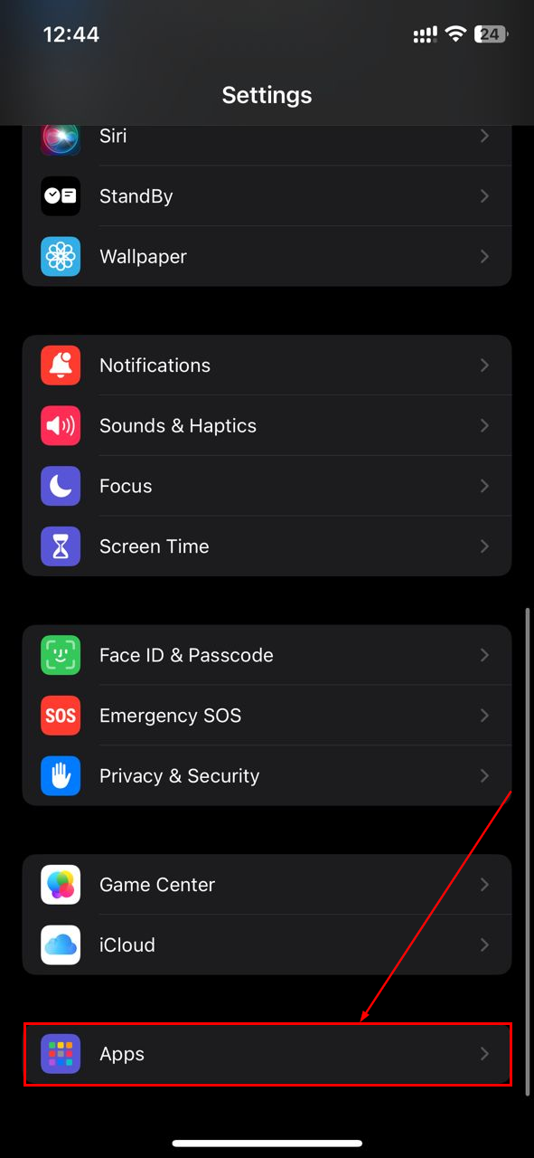 Step 1: Open the Settings app on your iPhone and select "Apps"