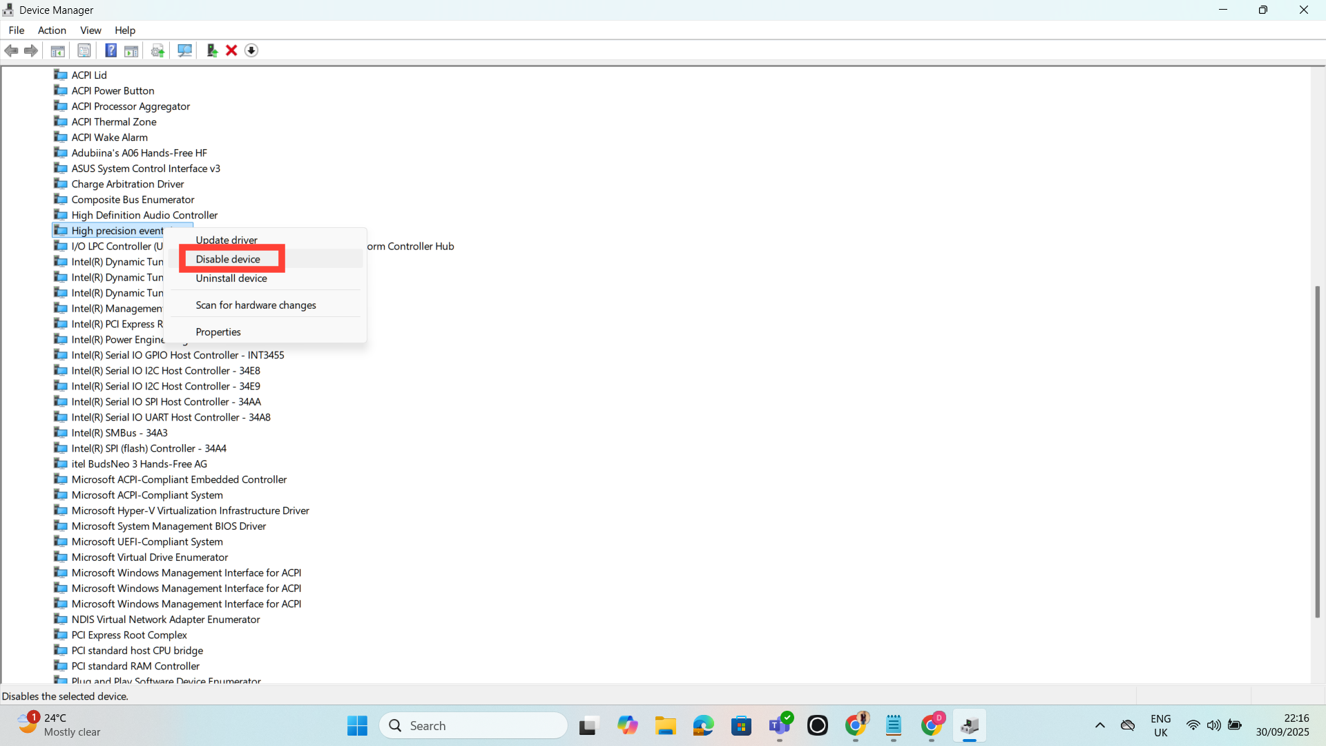 Step 3. After that, scroll down and click on "High Precision Event Timer."