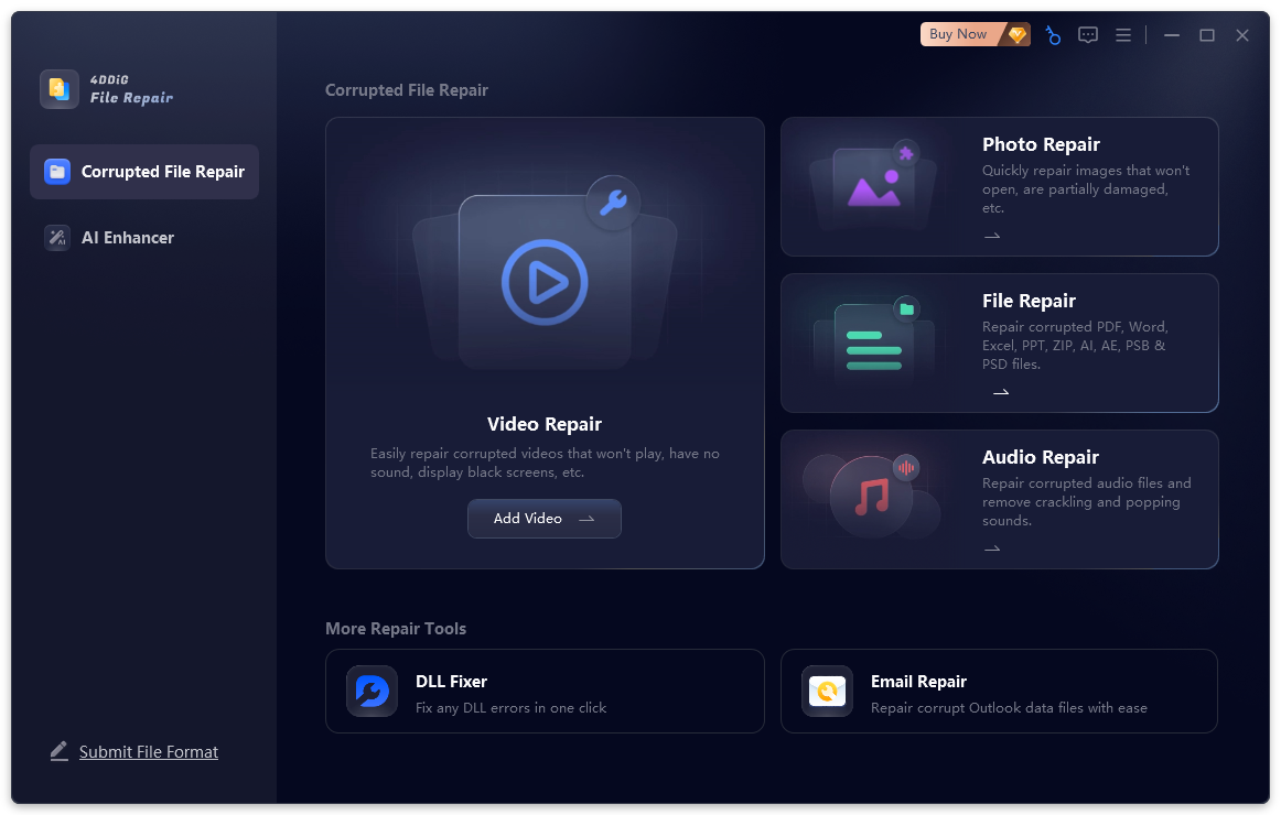Step 1: Download, install and open the 4DDiG Document Repair tool on your computer. Proceed by clicking the "File Repair" button on the main interface.
