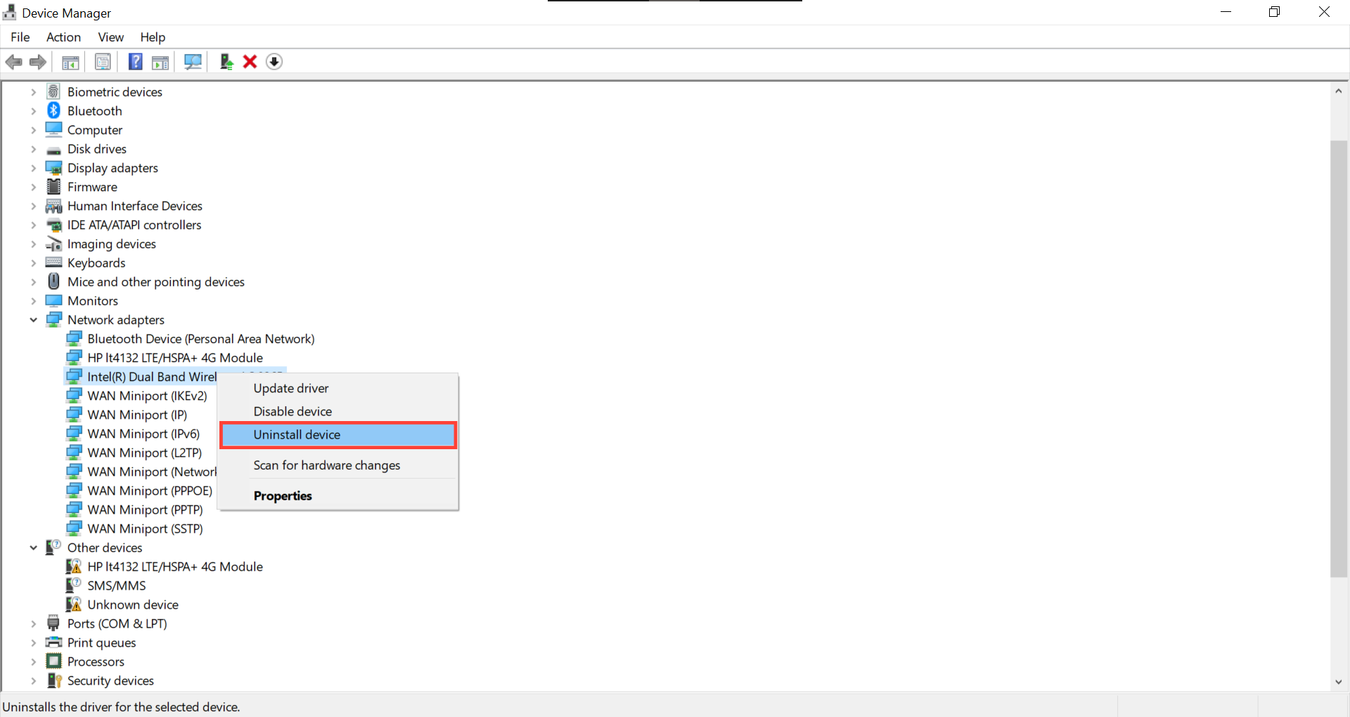 Step 3: Right-click your network adapter and select "Uninstall Device"