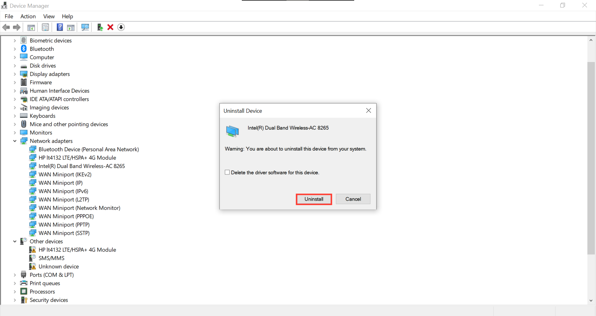 Step 4: Confirm the uninstall.