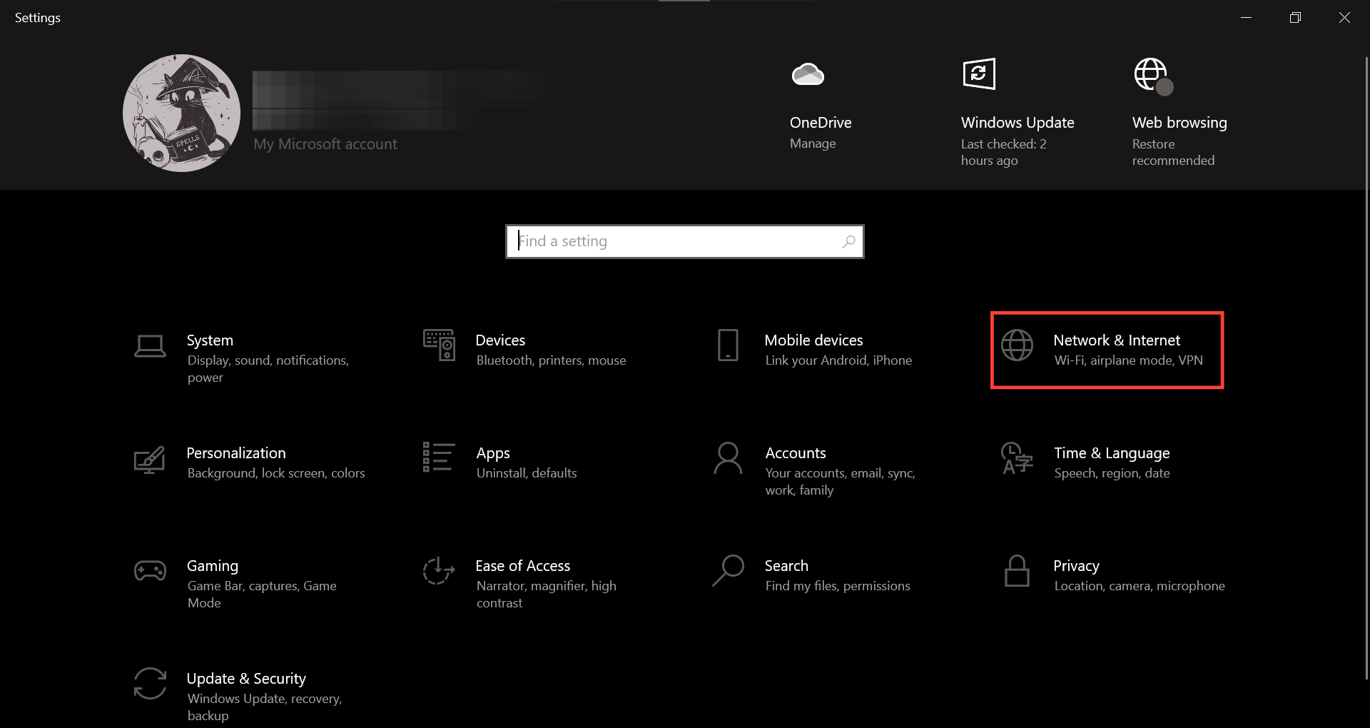 Step 2: Select "Network & Internet"