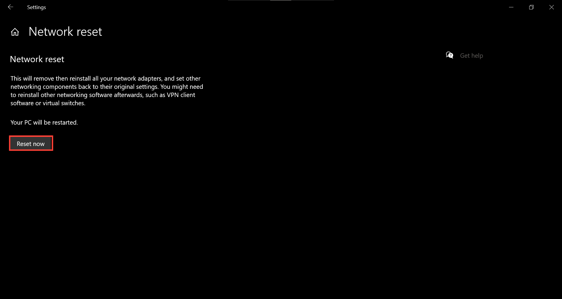Step 4: Click "Reset now"