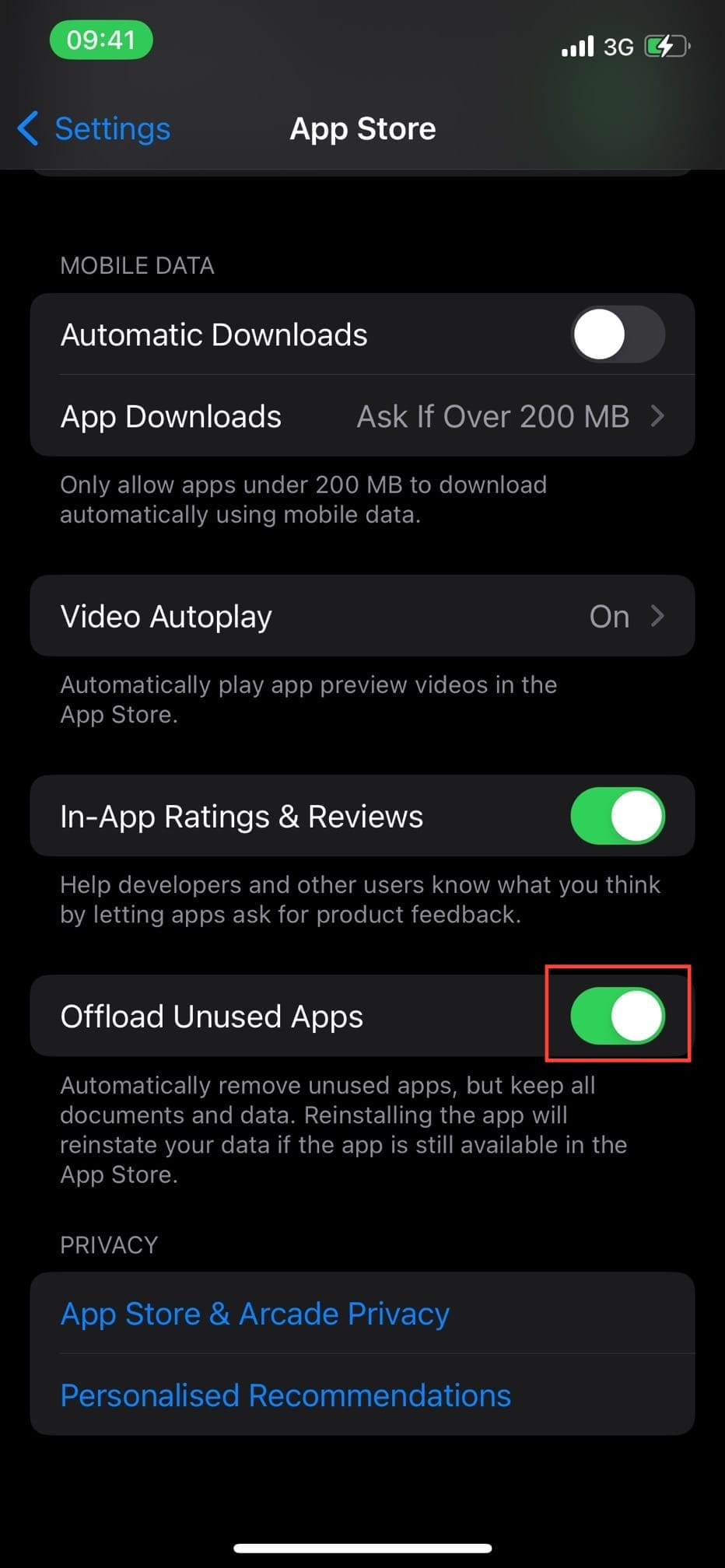 Step 3. Scroll down and toggle on Offload Unused Apps.