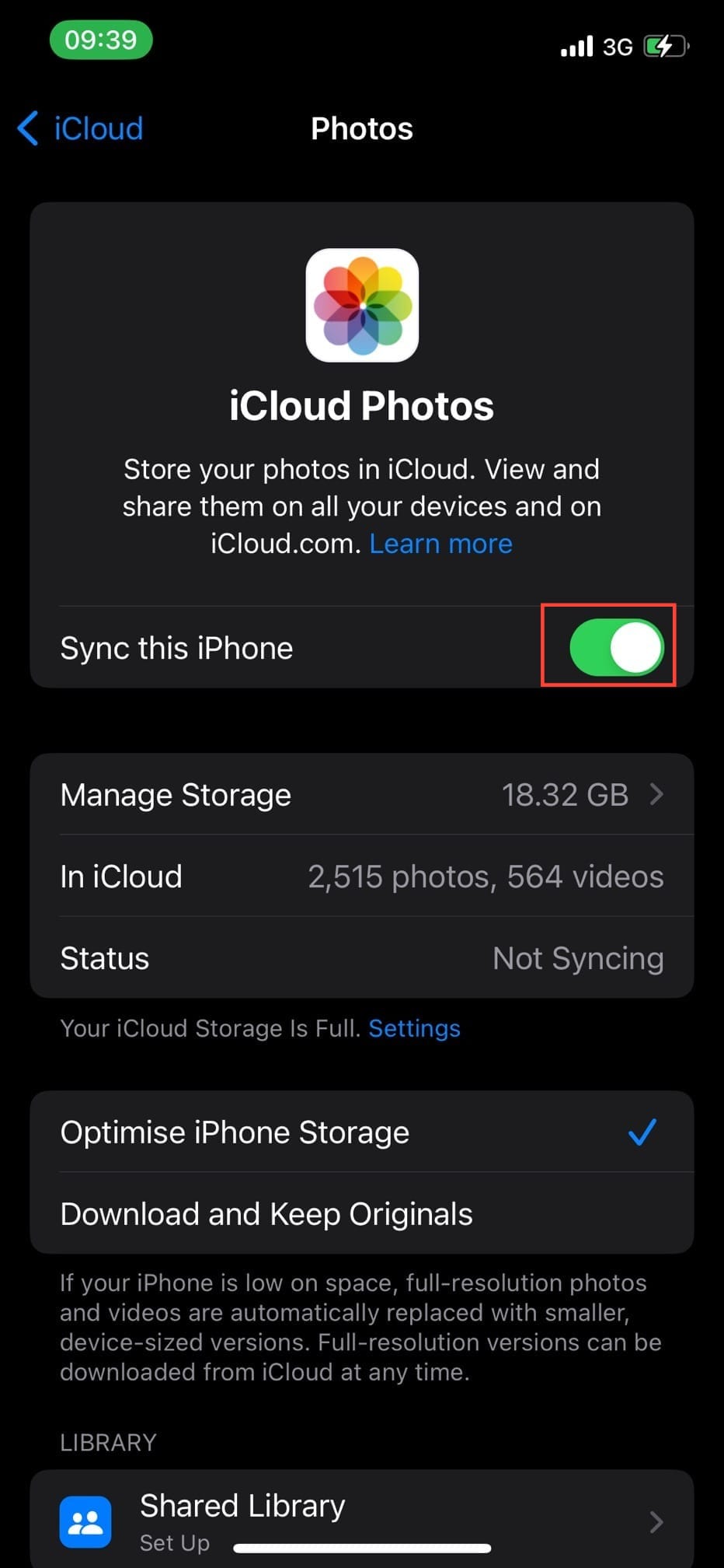 Step 4. Toggle on Sync this [device] to enable iCloud Photos.