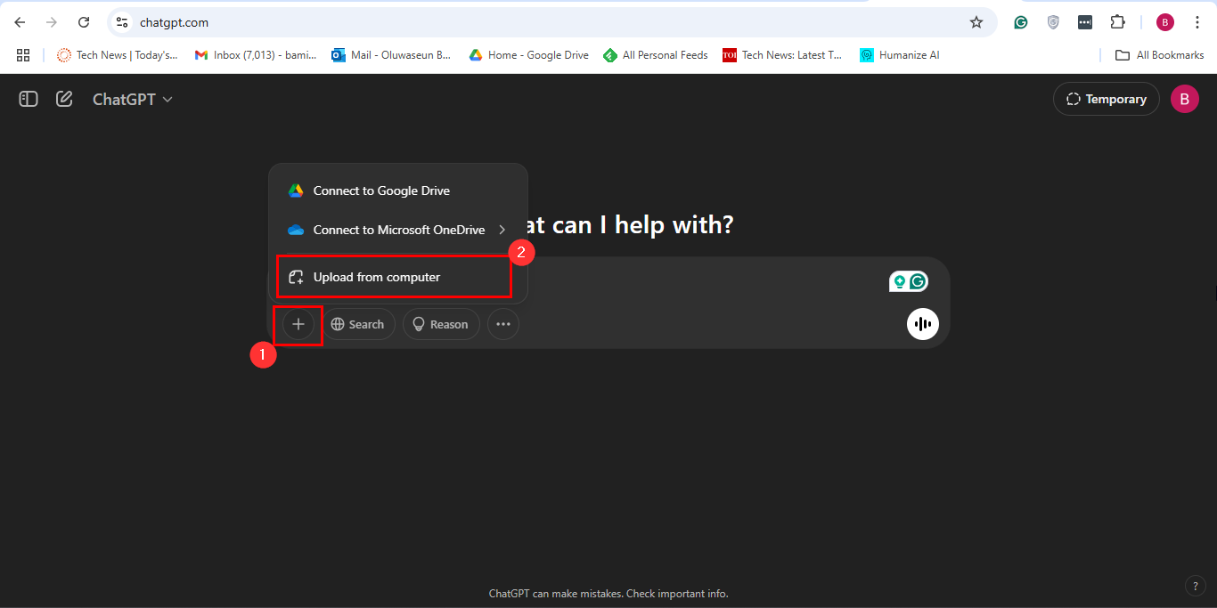 Step 2: Upload the image you wish to turn into a Ghibli-styled image by clicking the plus sign and selecting "Upload from computer"