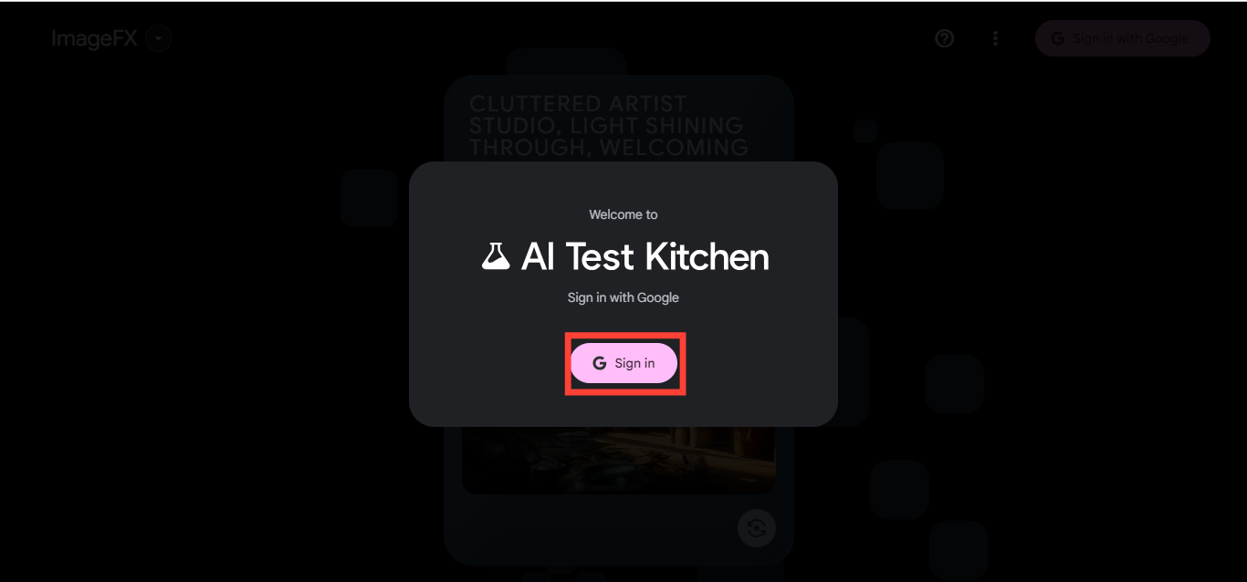 - Visit the Google AI Test Kitchen site and tap the sign-in button at the top right corner.