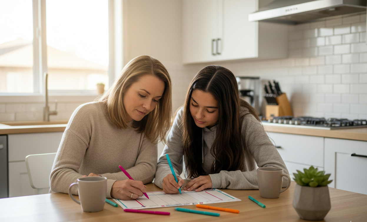 The “For You Calendar” is a paper-based weekly planner created in partnership with stationery creator Linda Tong (@lindatongplanners). It’s aimed at families raising teens in a social-media-first world.