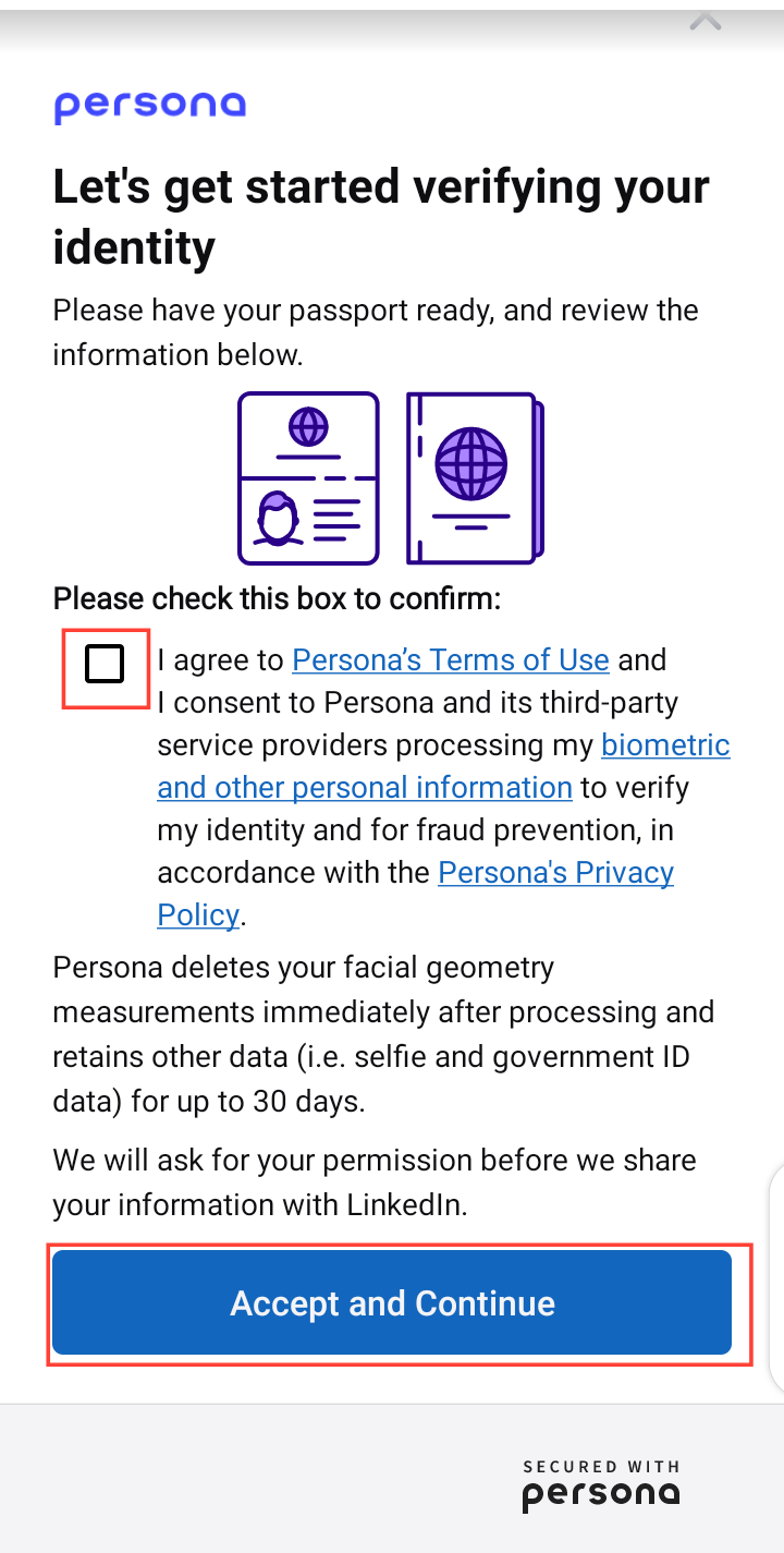 - On the new page, tap on “Verify your identity with Persona”