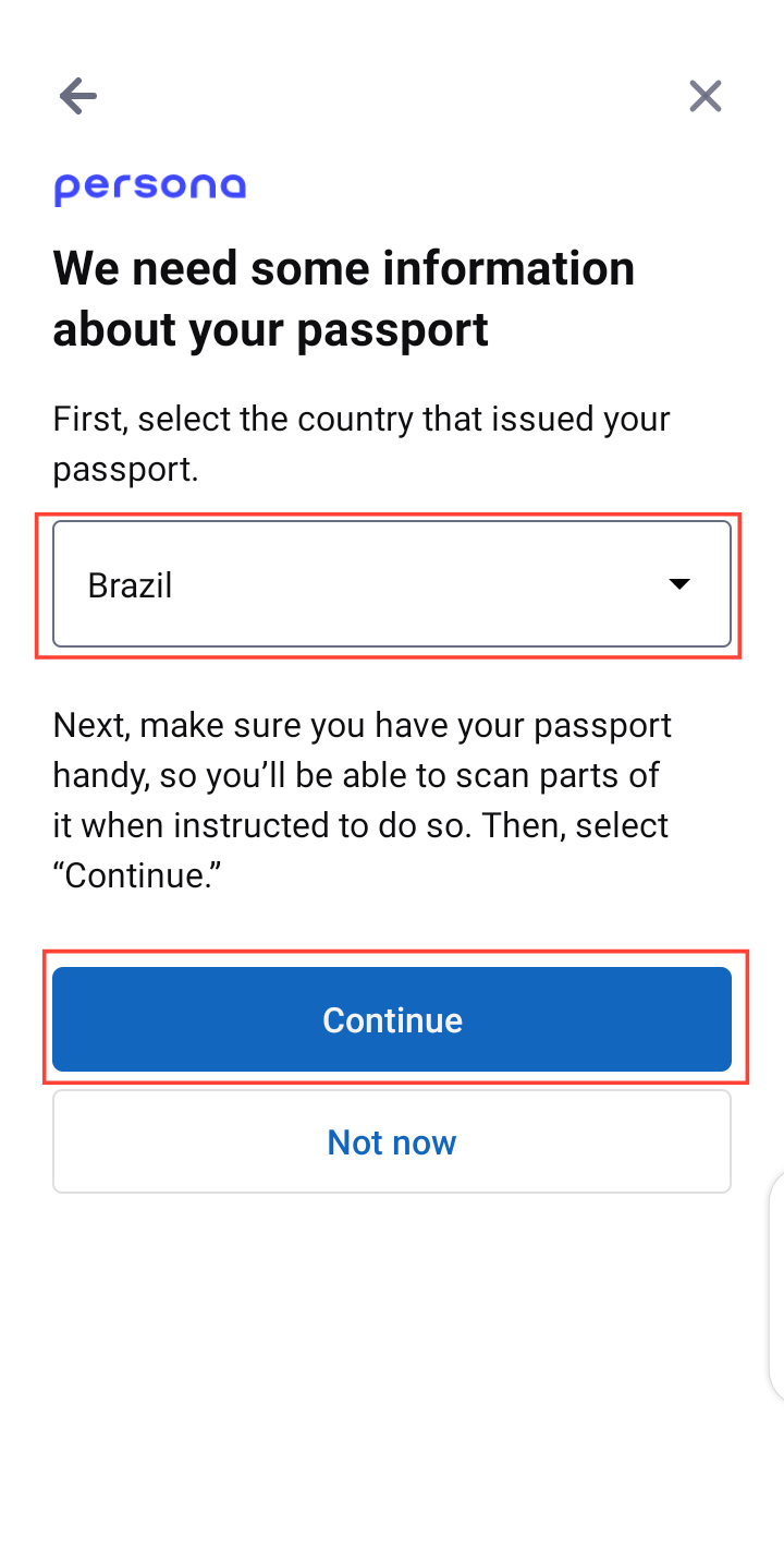 - Select your country and tap "Continue"