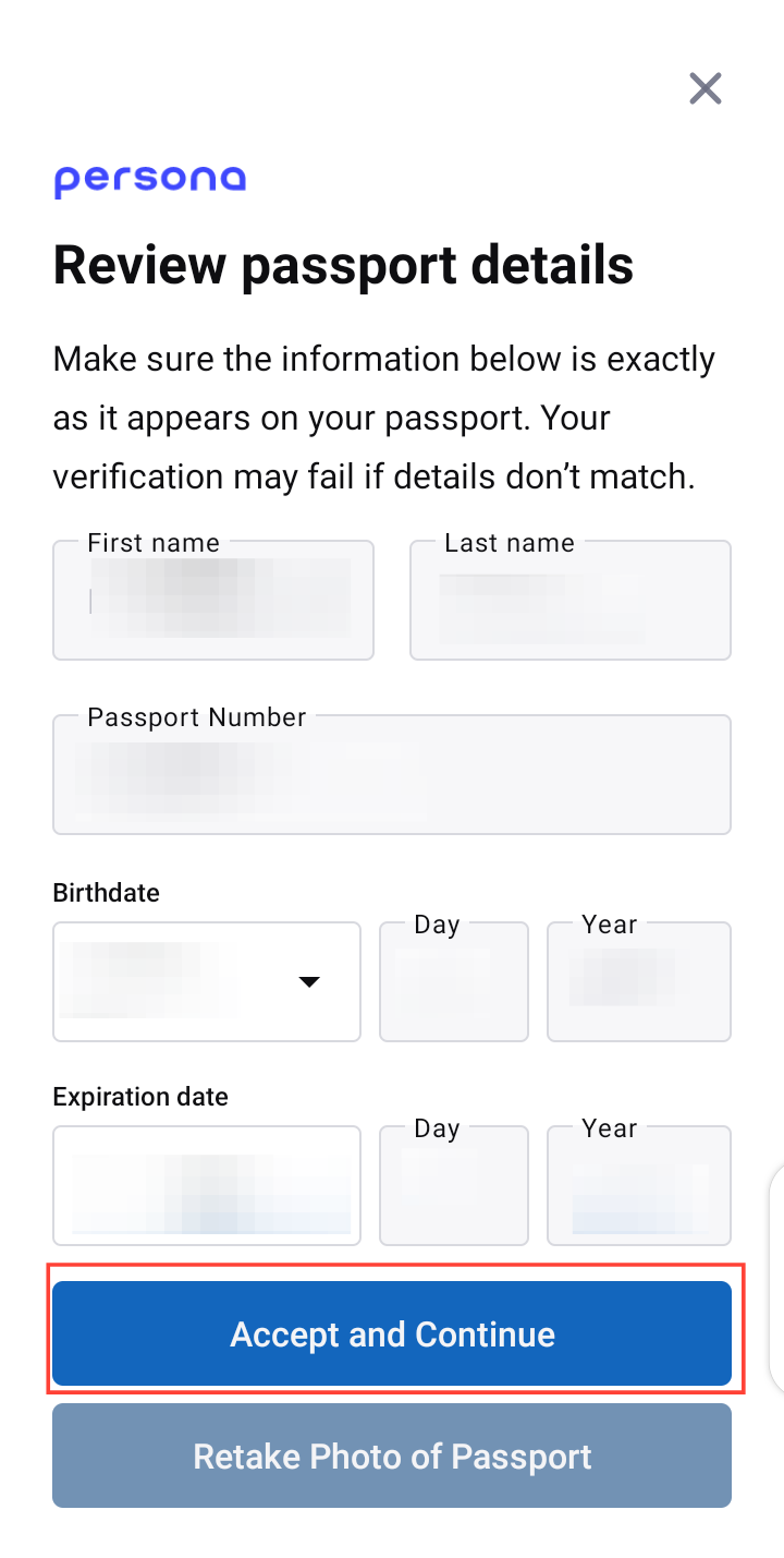 - Next, review your passport details and tap "Accept and Continue"