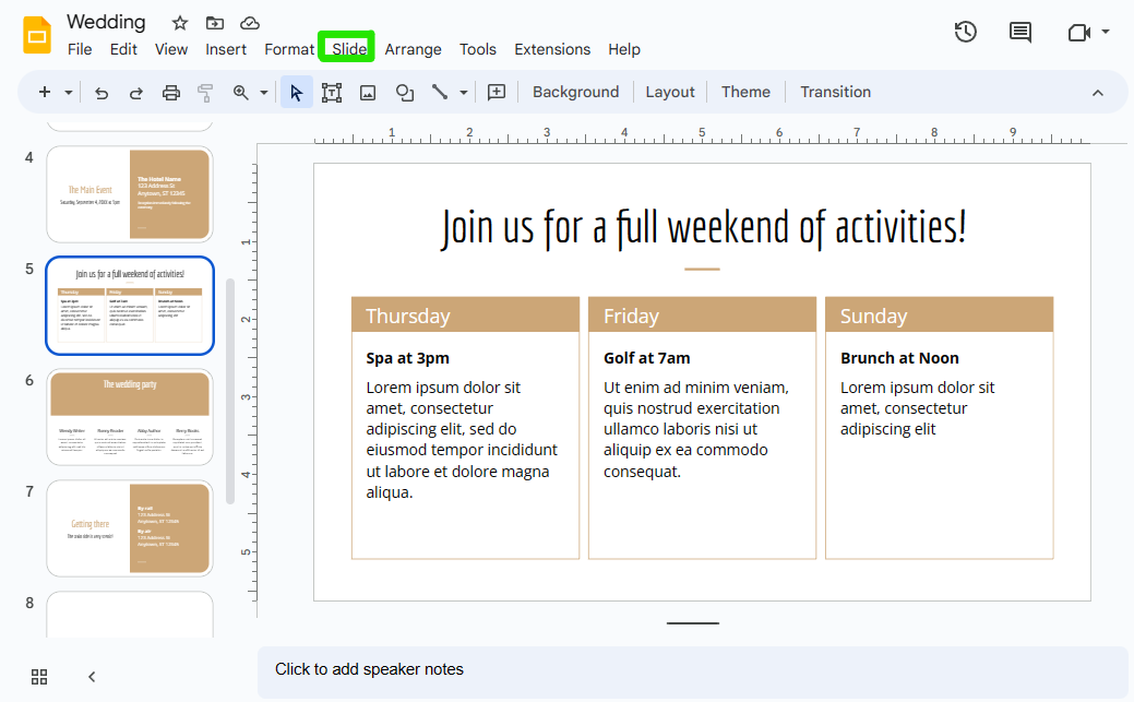 3. Once you have selected all the desired slides, click on the Slide tab beside the format option.