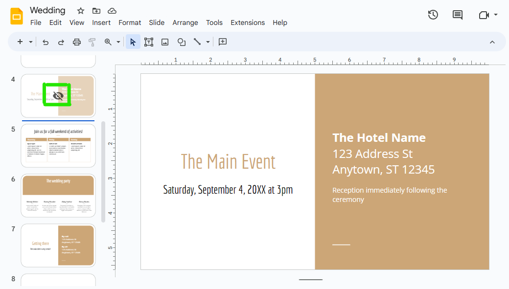 Hiding a slide in Google Slides provides a convenient way to exclude specific slides from your presentation without deleting them entirely.
