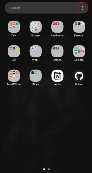 - Go to your Apps drawer and select the three-dot icons at the top right.
