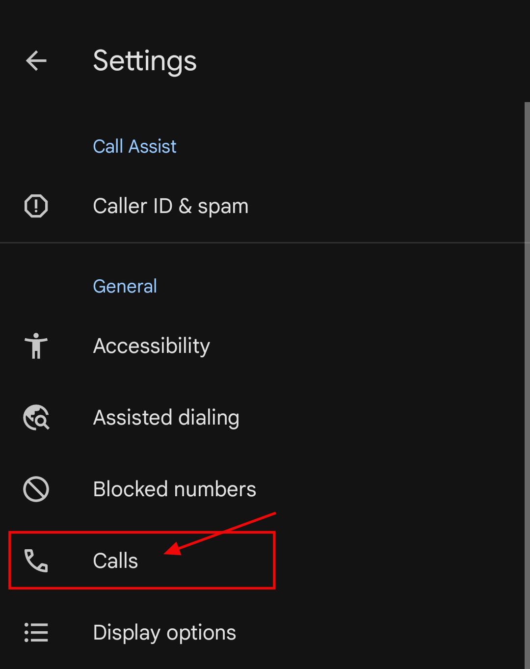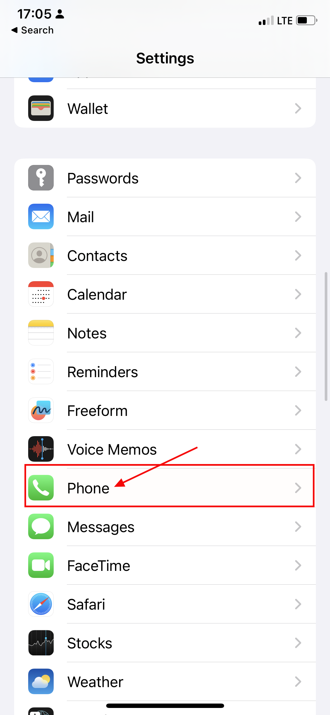 Step 2: Scroll down to apps and tap on Phone