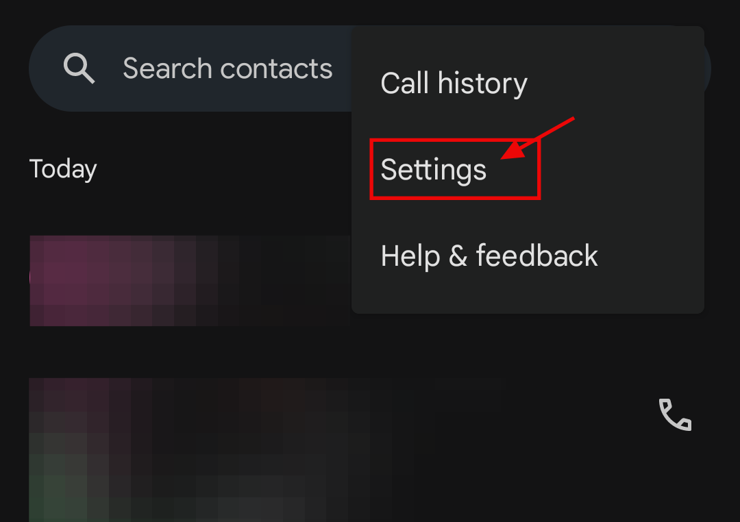 Step 1: Open the Phone app and tap the Menu icon (three dots) and select Settings