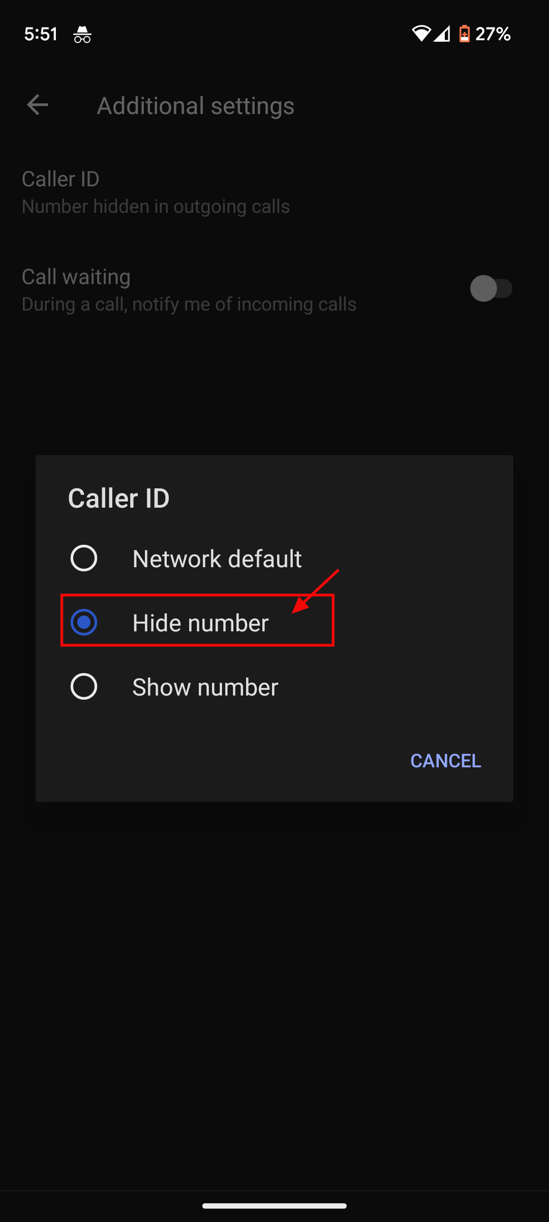Step 4: Toggle off the switch next to Show My Caller ID
