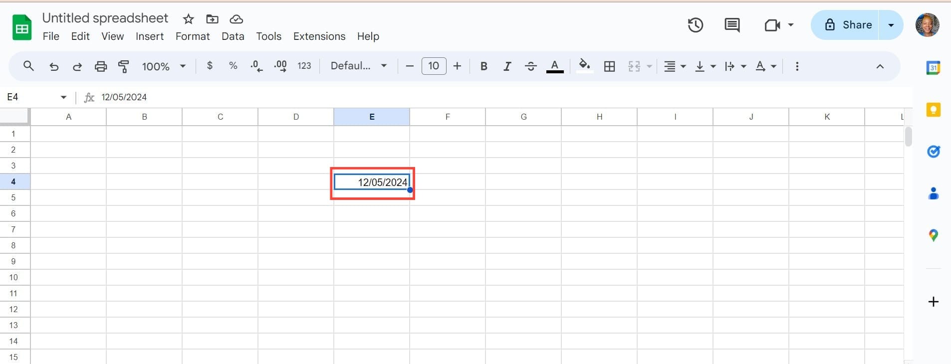 - Click on the cell where you want the date picker. Then, type in any valid date format in the selected cell.