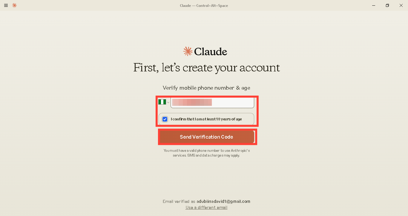 Step 5: Now select your country and enter your phone number. After that, tick the box below and tap "Send Verification Code".