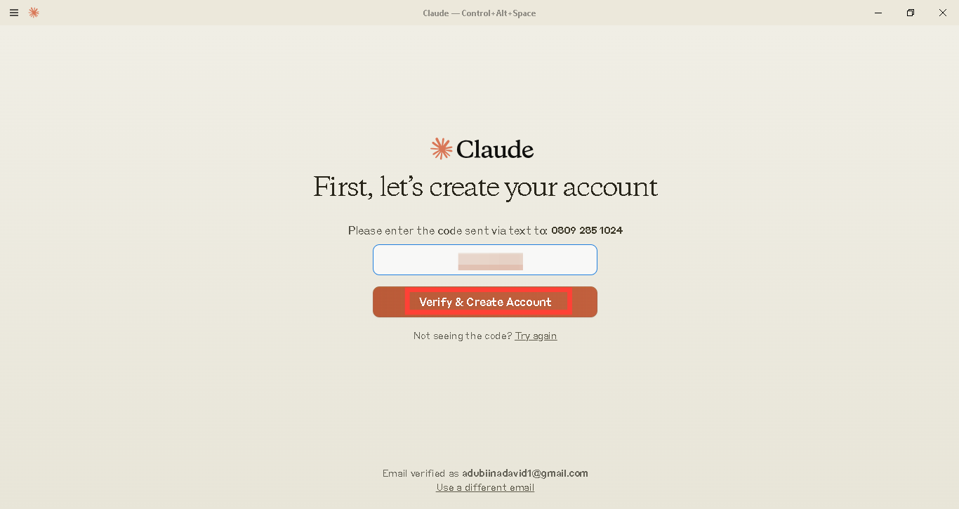 Step 6: Lastly, enter your verification code and tap "Verify & Create Account".