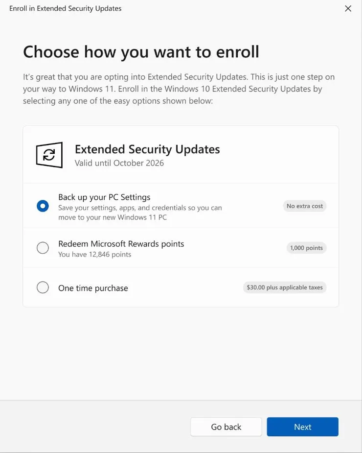 For users outside the U.S., options include a one-time $30 purchase, redeeming 1,000 Microsoft Rewards points, or free enrollment if your PC is already synced with a paid OneDrive or Microsoft 365 plan. Education users get a much cheaper deal: $1 for the first year, $2 in the second, and $4 in the third, totaling $7 per device. Business users, however, will pay $61 per device for the first year, with the cost doubling each year for up to three years.