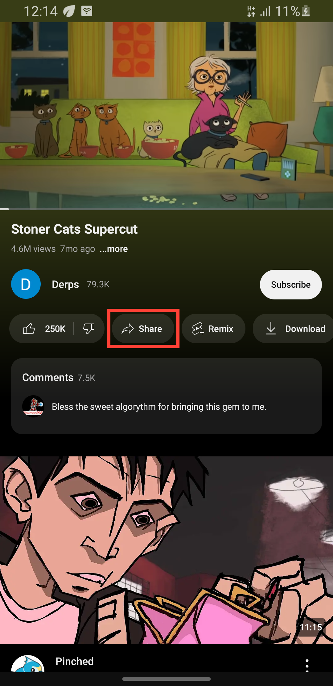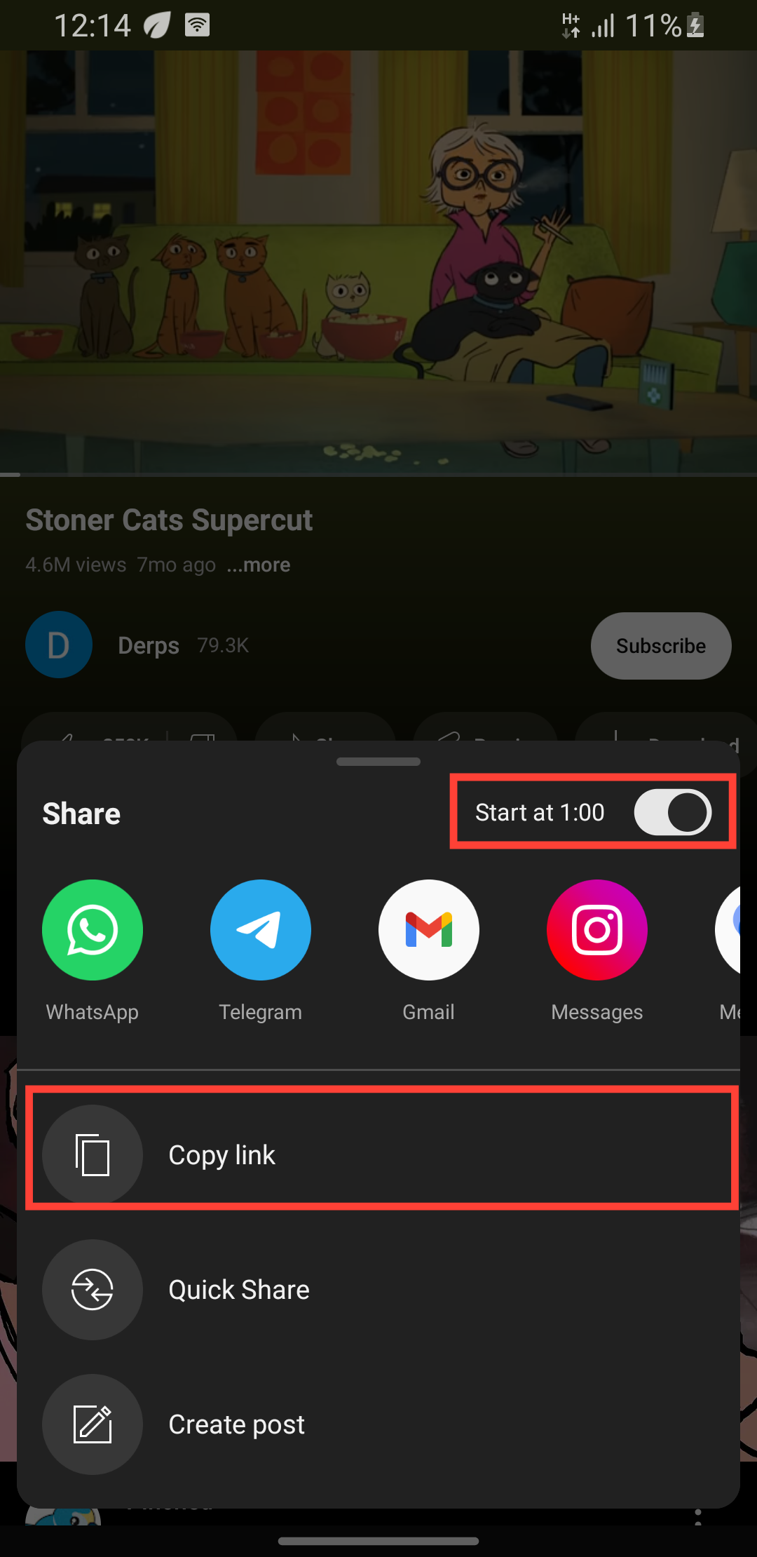 Create a YouTube Link with a Timestamp Using the Share Feature – on a mobile phone