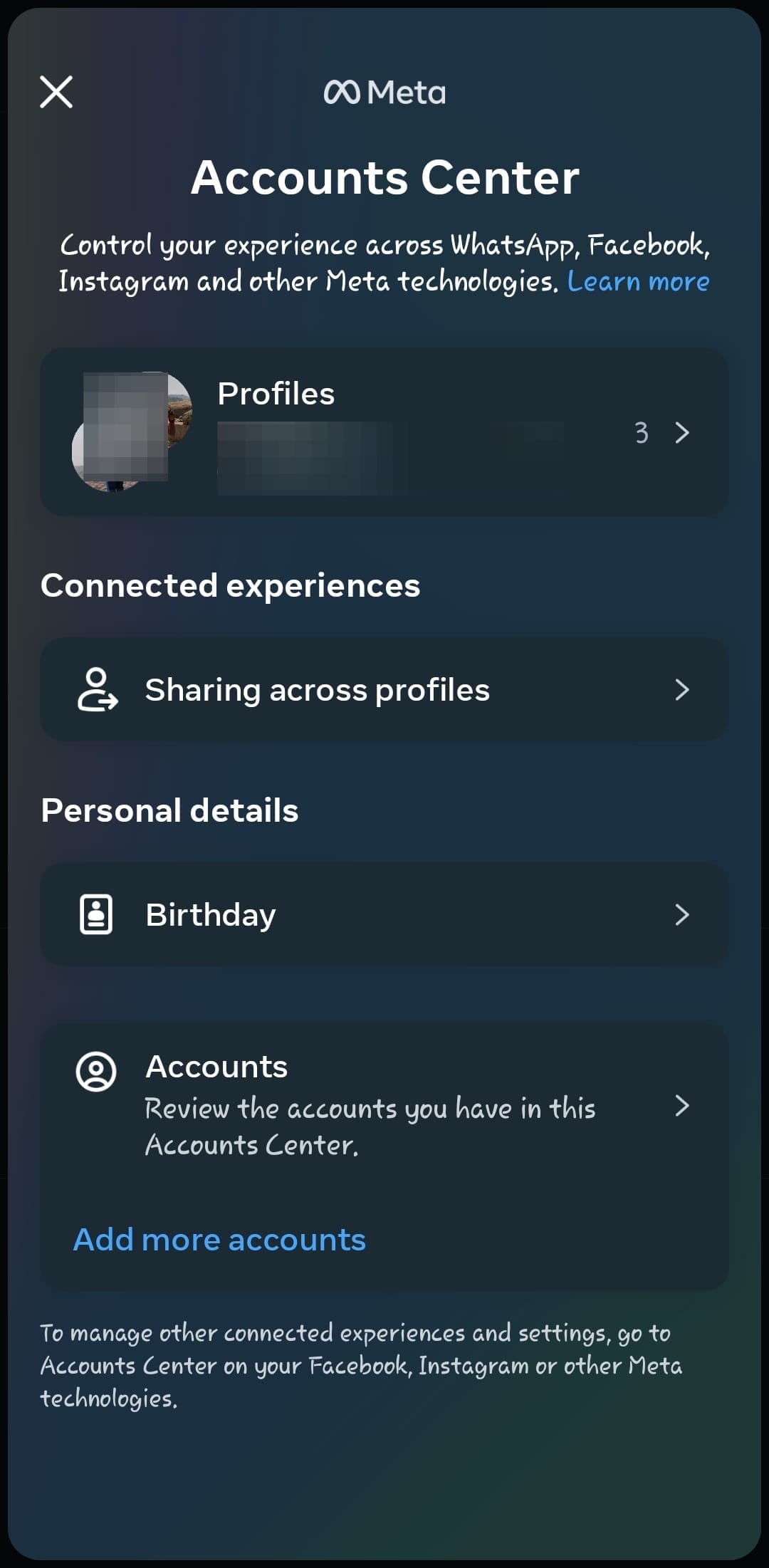 Step 7: Just like that, you've been able to put all your Meta apps under one umbrella. Well, technically under one Account Centre, but you get the idea.