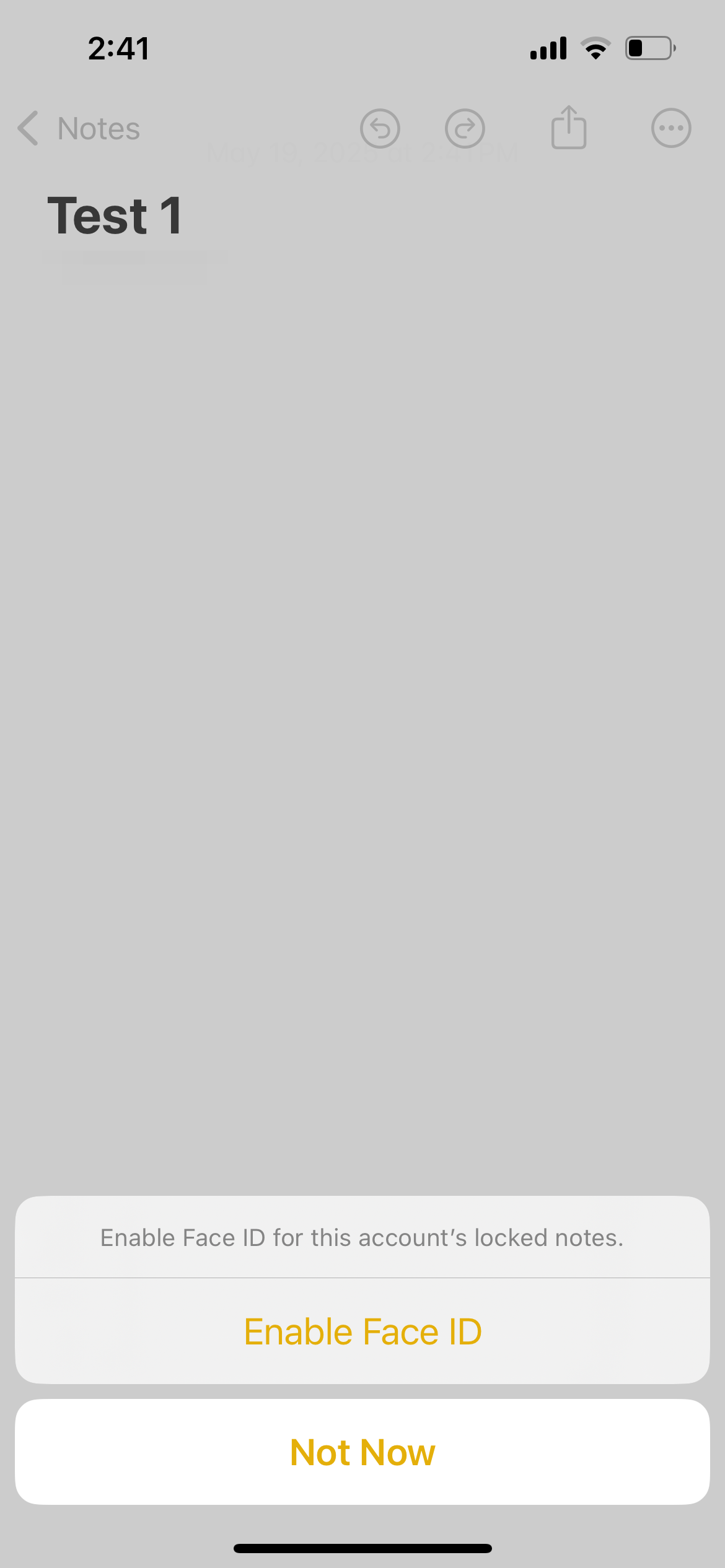 Step 4: If you choose to use your iPhone passcode, you’ll need to enter it to confirm. After confirming, a pop-up will ask if you’d like to enable Face ID for unlocking notes in the future. You can tap Use Face ID to enable it or Not Now if you prefer not to